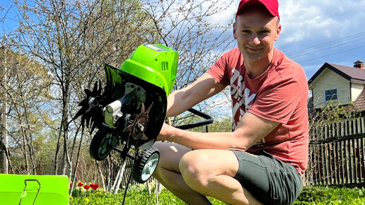 Когда самому лень копать: завёл помощника - культиватор Greenworks G40TLK4. Тест-драйв, сражение с одуванчиками, нашествие в теплицу, выводы