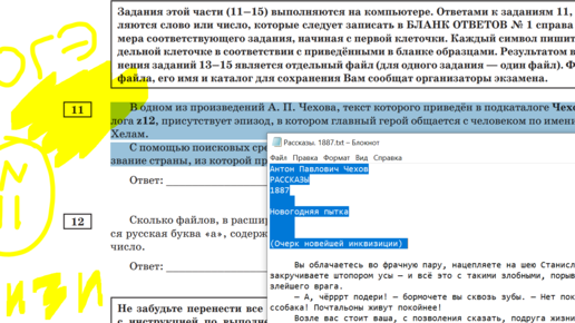Решаем парочку задач №11 ОГЭ по информатике на поиск информации в каталогах рассказов Чехова. Ошибиться можно, но это будет крайне обидно