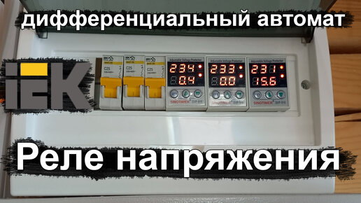 Электрощит на 3 фазы с реле напряжения и дифференциальными автоматами.