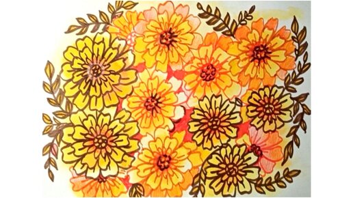 На мокрый лист бумаги, пятнами наносим акварельную краску. После высыхания бумаги, маркерами превращаем пятна в цветы. 🌺🌸🌺