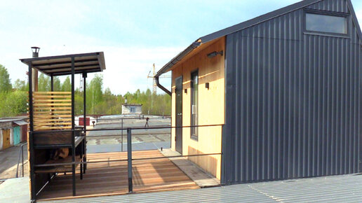Дом и мангальная зона прямо на крыше гаража.