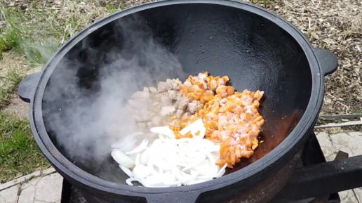 В саду готовим плов на костре и отмечаем день рождения бабушки. Готовим плов на костре в большом казане и едим кружевной торт с клубникой