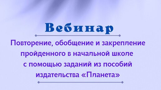 Повторение обобщение и закрепление пройденного в начальной школе с помощью заданий из пособий издательства