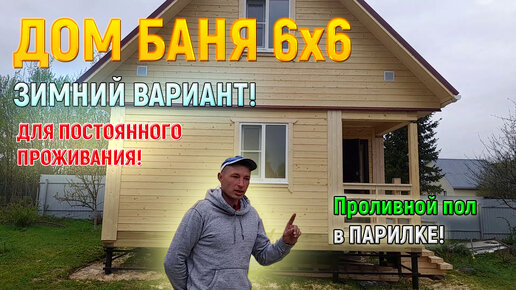 Зимний дом баня 6х6 из бруса для постоянного проживания от СК Доминика