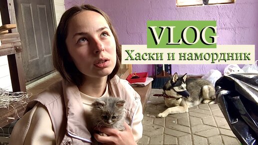 ХАСКИ В НАМОРДНИКЕ ЗНАКОМИТСЯ С КОТЕНКОМ VLOG
