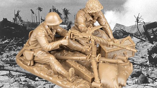 солдатики Plastic Platoon Японский станковый пулемёт (type 92) с расчётом