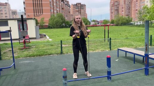 Тренируем бицепс/трицепс с эспандером на площадке