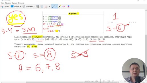 Задание 6 из ОГЭ по информатике с параметром А: анализируем программу. Не самая простая задача из первой части: ошибиться легко, но не надо