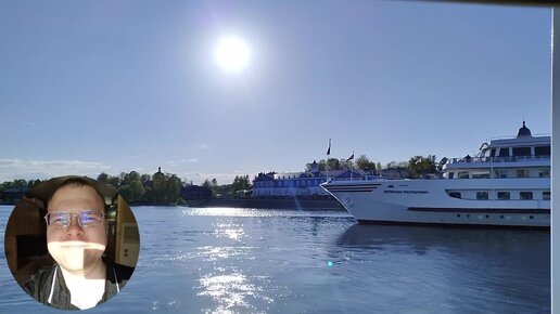 Яркое солнце освещает город Мышкин с которого отправляется в рейс теплоход "Симфония севера". Прекрасный, живописный вид из каюты 11.05.2023