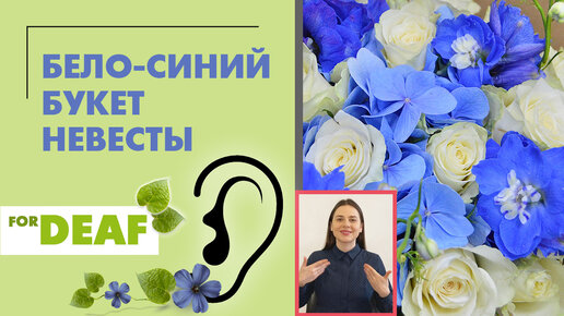 Розы, гортензия, дельфиниум { СУРДОПЕРЕВОД } Бело-синий букет невесты