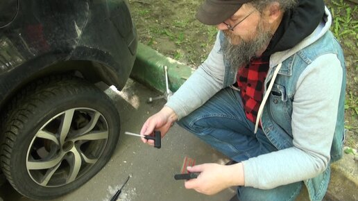 Ремонт колеса на дороге.