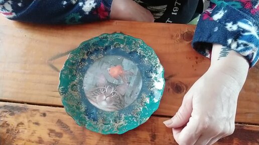 Покажу Вам,как сделать простой обратный декупаж на тарелке.