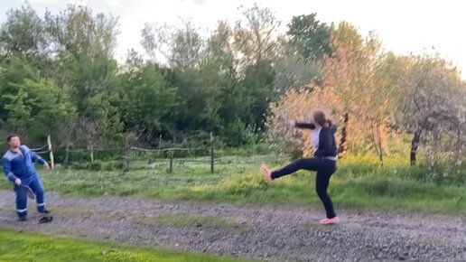 Играли с мужем в бадминтон