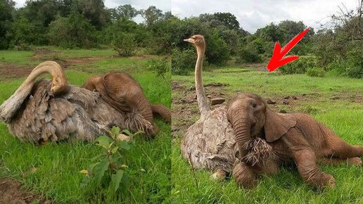 Слон-сирота каждый день обнимает СТРАУСА. Он потерял мать, но приобрел настоящего ДРУГА...