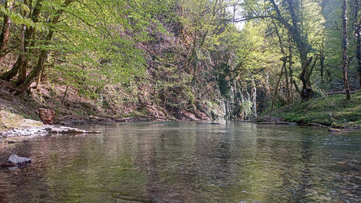 Прогулка вдоль горной реки недалеко от глэмпингов "Вили Улей" в Сочи