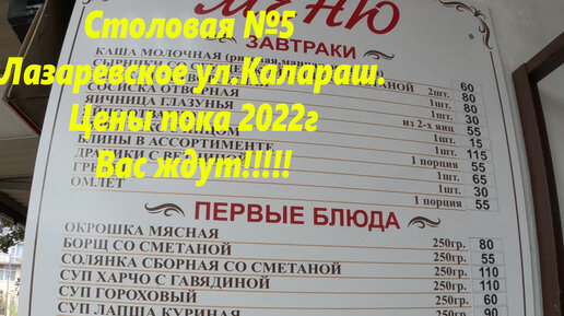 Столовая № 5 Цены пока 2022г. Уже открыты, вас ждут вкусняшки!!!🌴ЛАЗАРЕВСКОЕ СЕГОДНЯ🌴СОЧИ.