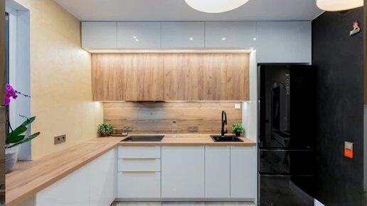 Дизайн кухни угловой со столешницей под окно @uyt-home.ru