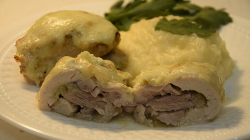 Нежные куриные рулетики с пюре из кабачка. Готовим из филе куриного бедра без шпажек для скрепления. Простые рецепты