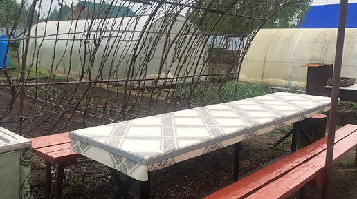 Конструкция длинного стола в беседке. Реставрация стола и скамеек.