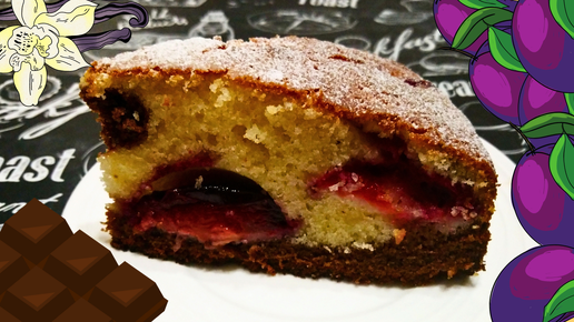 ВАНИЛЬНО-ШОКОЛАДНЫЙ ПИРОГ СО СЛИВАМИ / Нежный и ароматный двухслойный сливовый пирог