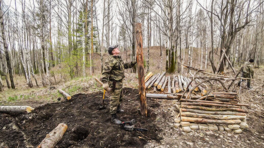 ЗЕМЛЯНКА У ОЗЕРА. КОСТРОВОЕ МЕСТО. НАЧАЛО СТРОИТЕЛЬСТВА