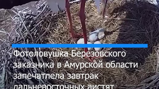 В Амурской области запечатлели завтрак птенцов дальневосточных аистов