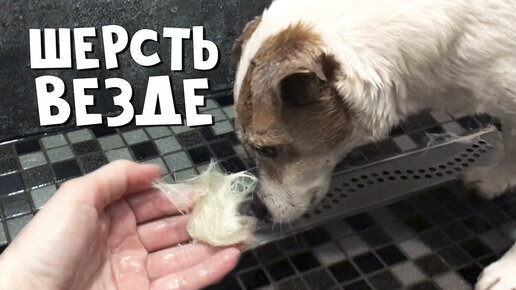 Намыли накупали собаку. Вся душевая в шерсти. Сохнем после душа