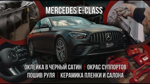 Mercedes E-class.Оклейка в черный сатин, покрытие кузова керамикой работа над мерседесом в салоне / Оклейка автомобиля Мерседес Е-класс