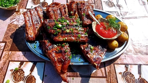 Жена моего соседа готовит шашлык только так и никак иначе. Сочный шашлык из свиных рёбер с гранатовым соком.
