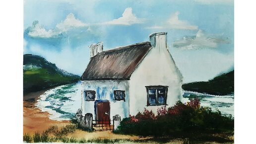 Как нарисовать домик у моря. Морской пейзаж. Как нарисовать лето гуашью.