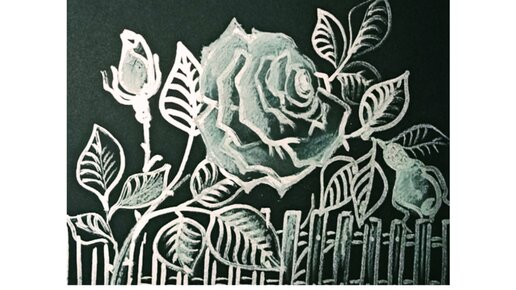 🌹Роза у забора. Рисунок маркером и меловым карандашом на чёрной бумаге.