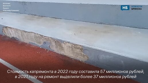 Трибуны на брянском стадионе «Труд» стали осыпаться через полгода после реконструкции