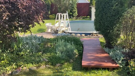 Сад 17 мая 2023г. Доделала два цветника, гуляем с Мартой, сад цветет, бассейн слили.