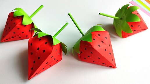 🍓Как сделать Подарочную Коробку в виде Клубники из Бумаги🍓 Простой Оригами🍓