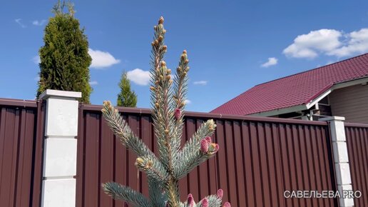 Обзор сада 17 мая 23 года. У ели Хупси шишки! Очень красиво!
