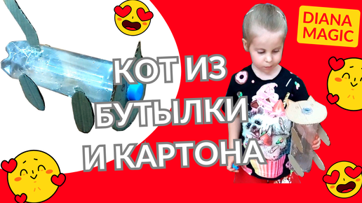 Самодельная игрушка кот из бутылки и картона