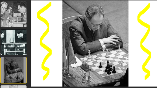 Ранний Михаил Ботвинник белыми мощно играет дебют Цукерторта против Николая Рюмина в Москве, 1936, 1-0. Доигрывать не стал до мата - долго