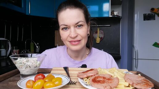 МУКБАНГ МАКАРОНЫ, ЖАРЕНАЯ КОЛБАСА, САЛАТ С КАЛЬМАРАМИ, СОЛЕНЬЯ/MUKBANG HALK FAMILY ЕДА