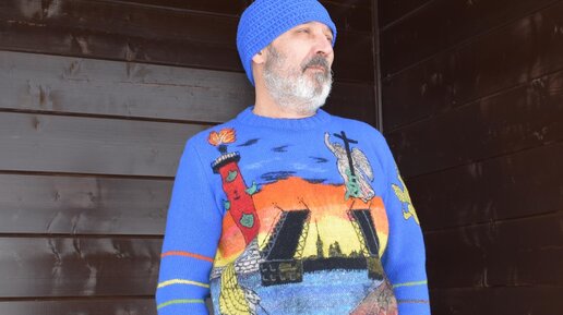 "Питер" джемпер спицами. Связан в технике интарсия с элементами сухого валяния на трикотаже и вышивки. #ElleDuke