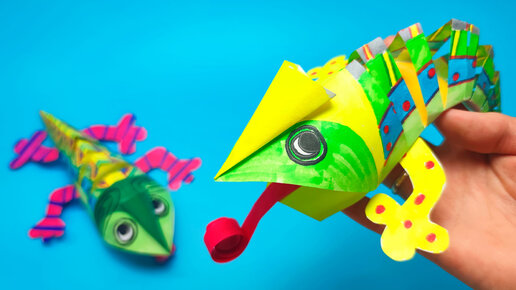 Крутая игрушка - Хамелеон из одного листа бумаги | Простая поделка своими руками