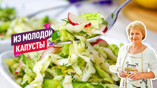 Хрустящий весенний Салат из молодой капусты с огурцом и редисом!