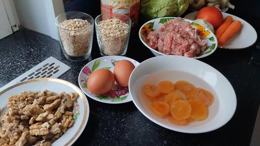 Готовлю обед: капуста тушеная с грибами и мясом и овсяное печенье без сахара