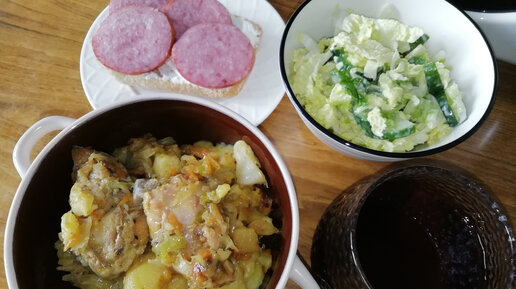АСМР ИТИНГ 😋 КУРОЧКА ТУШЁНАЯ, 🥪 БУТЕРБРОД С КОЛБАСКОЙ И 🥗 САЛАТ 😋😋👍