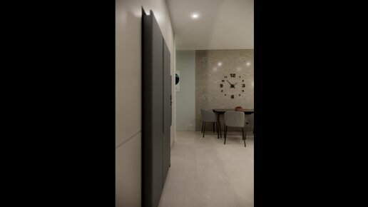 Кухня-гостиная и прихожая в трехкомнатной квартире в Новой Москве. Минимализм в интерьере.