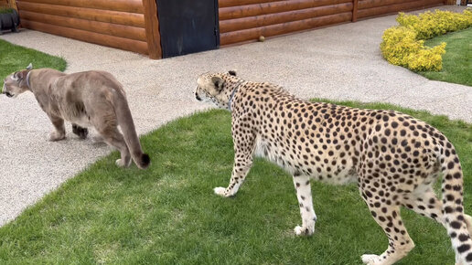 Гепард Герда и пума Месси гуляют вместе😍
