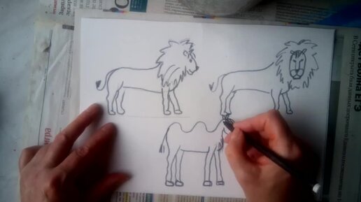 Как просто нарисовать верблюда и льва поэтапно для детей и начинающих, с объяснением.