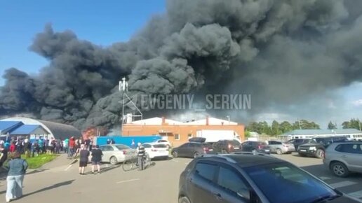 В селе Коллонтай Малоярославецкого района горит ангар. Раньше здесь располагалось предприятие по выращиванию тихоокеанской креветки