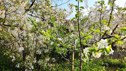 Цветение плодового сада, котовника и тюльпанов, а так же мошки в середине мая
