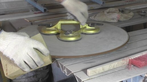 Делаем фаску на торцевой части керамогранита 600на600 вырезанному по кругу.