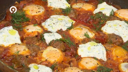 Шакшука из перепелиных яиц с мясом